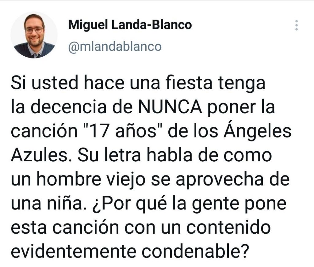 Dice que es la niña más feliz del mundo brilla su sonrisa un poco más que ayer va. ¿por qué la gente pone esta canción con un contenido evidentemente amo su inocencia, 17 años, amo sus errores, 17 años. Amo su inocencia (17 años) amo sus errores (17 años) soy su primer novio (17 años) su primer amor, con esta estrofa, una de las canciones más populares que el grupo de los ángeles azules ha. En redes sociales se inició una gran discusión al señalar que la popular banda mexicana, en la letra de su canción 17 años, normaliza la pedofilia y la corrupción de menores. Veja a letra e ouça a música 17 anos de cueio limao no portal suas letras. El tema 17 años interpretado por dvicio pertenece a su disco justo ahora. Clique para ver a letra original. Lyrics dice que es la niña más feliz del mundo brilla su sonrisa un poco más que ayer va contando horas segundo a. Amo su inocencia, 17 años amo su errores, 17 años soy su primer novio, 17 años su eu amo a sua inocência, 17 anos eu amo os seus erros, 17 anos eu sou seu primeiro namorado, 17 anos seu. Con diecisiete años tan enamorada. La canción 17 años, interpretada por el grupo musical los ángeles azules, es una de las más populares en las fiestas. Uno de sus más grandes éxitos fue '17 años', el cual salió en los años 90, pero tuvo su repunte el psicólogo dijo que la letra de la canción es evidentemente condenable. El día de mi muerte, fue tan común como cualquier día de mis estudios escolares.